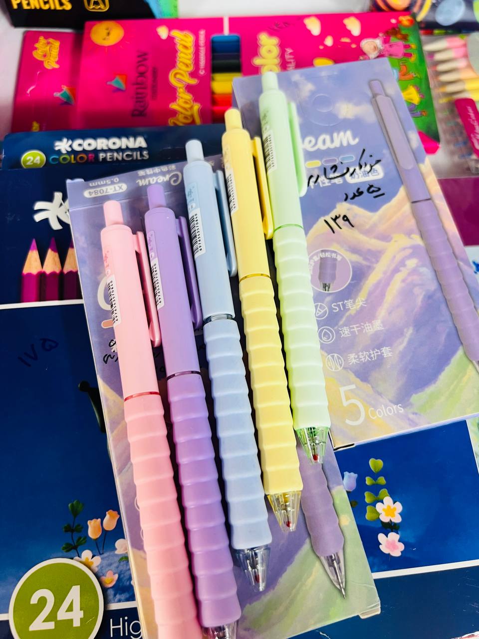 پک ۵ رنگ خودکار فشاری پاستلی باکیفیت