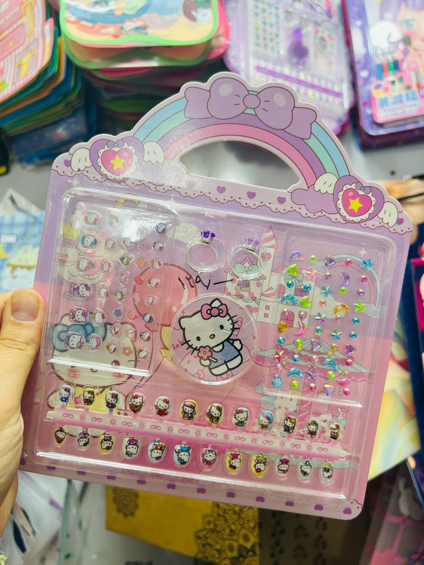 پک اکسسوری دخترانه(ناخن مصنوعی+دوعدد انگشتر+برچسب ناخن+نگین)